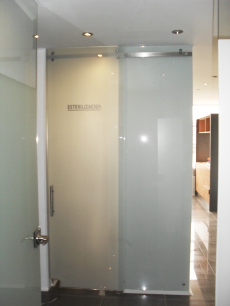 division en vidrio templado con riel de lujo en aluminio y carros en acero ( dibujos opcionales)